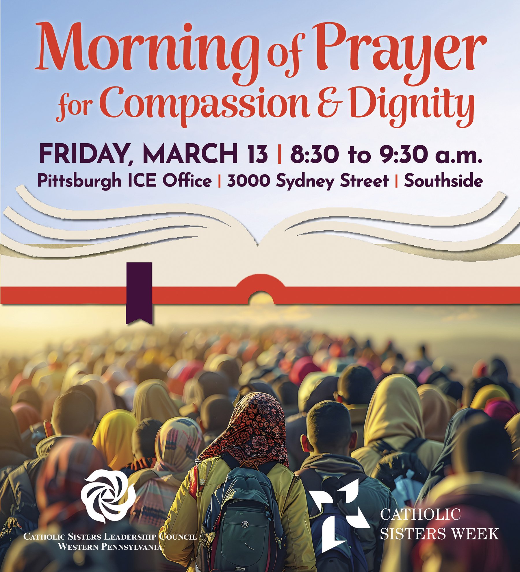 During Catholic Sisters Week (March 8-14), women religious from throughout Western Pennsylvania will stand in prayer at the U.S. Immigration & Customs Enforcement (ICE) field office in Pittsburgh. Together, we will pray that compassion, dignity and respect be shown to all, in particular to those who are immigrants. All people of good will are invited to join this interfaith prayer vigil.